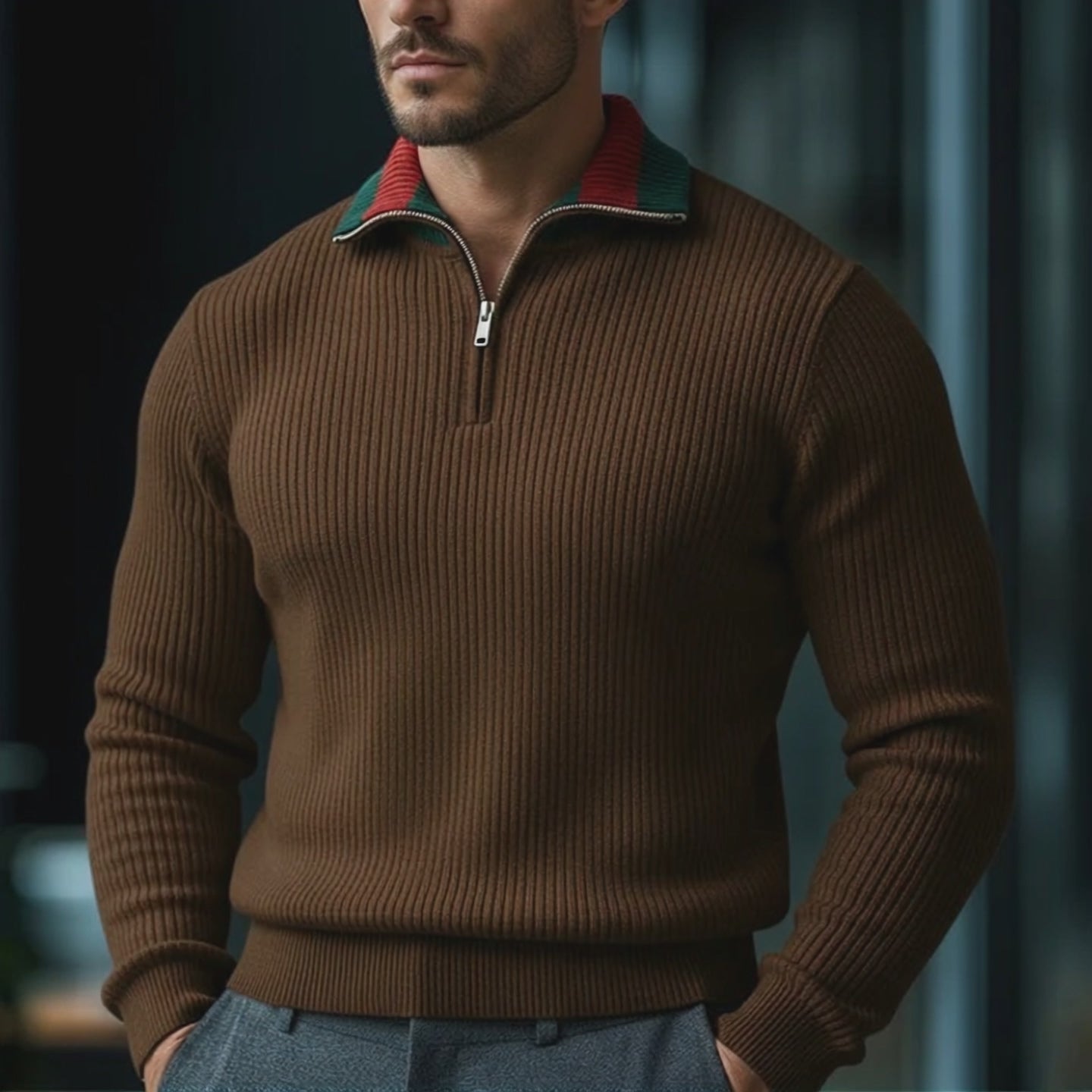 Men's Classic Casual Stand-up Collar Zip-up Knit Cardigan (belt Included) MTA0492K7K
