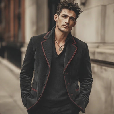 Pair this corduroy blazer with a crisp white shirt and dark trousers for a polished business look. For a more relaxed yet sophisticated style, consider wearing it with a turtleneck and chinos. Accessories like a sleek tie or pocket square can further enhance the blazer's elegant appeal.