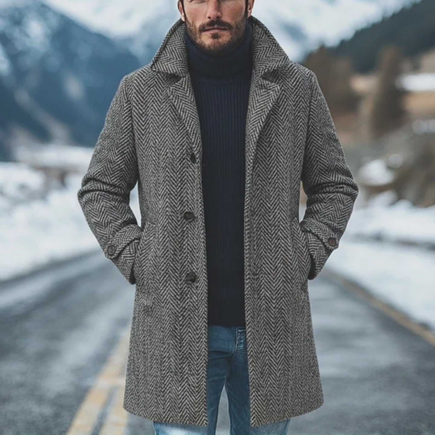 Men's Herringbone Blend Lapel Mid-length Coat MTA0605K1X