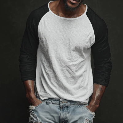 This long-sleeve crew neck tee blends vintage-inspired color blocking with modern casual comfort. Designed for everyday wear, the shirt offers a relaxed silhouette, soft midweight knit, and contrasting panel details that give a retro yet refined look suitable for multiple seasons.