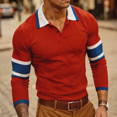 Men's Retro Casual Color Block Knitted Lapel Sweater MTA2241L5TO