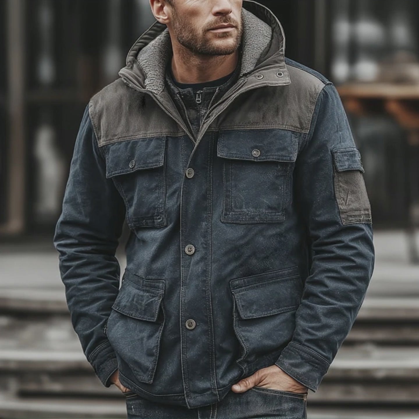 Product Name:Men's Retro Casual Cotton Washed Hooded Multi-Pocket Zipper Jacket