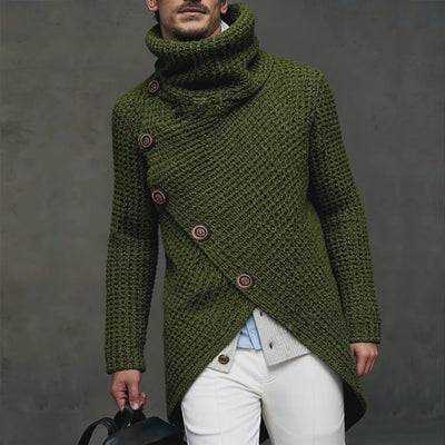 This Men's Retro Casual Knitted Sweater is designed with a sophisticated high neck and button-up front, providing both warmth and style. The mid-length design ensures versatility for a range of occasions, from casual outings to more polished events.