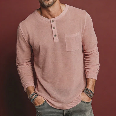 Henley Collar: The classic Henley collar lends a unique touch to the sweater's design, setting it apart from traditional crew or V-neck styles.
