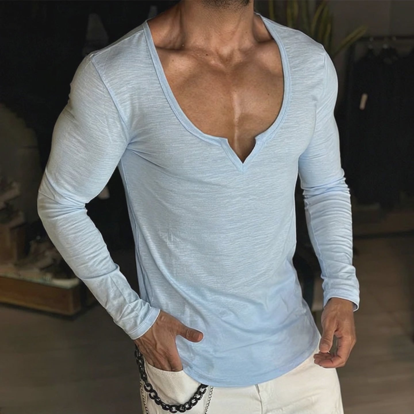 The Men's Retro Casual Round V-Neck Long-Sleeve T-Shirt is a must-have addition to any wardrobe. With its blend of style, comfort, and versatility, it becomes an unbeatable choice for the modern man seeking a touch of retro flair in his attire.