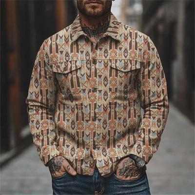 The Men's Retro Ethnic Style Jacquard Collar Jacket, embodies a unique blend of tradition and modernity. This jacket is an exquisite piece that showcases intricate ethnic patterns through its skillful jacquard design, exemplifying a rich cultural aesthetic that is both timeless and stylish.