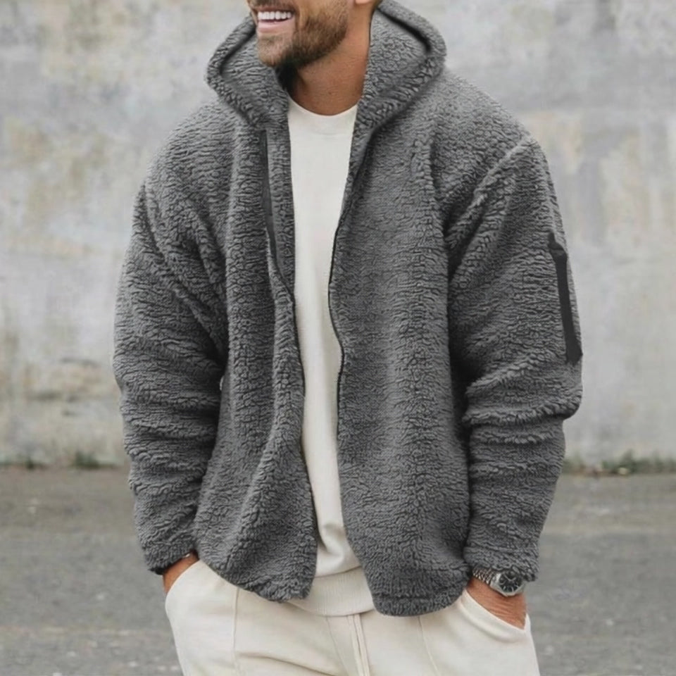 Einfarbige, warme, lockere Doppelfleece-Kapuzenjacke für Herren 18771046X