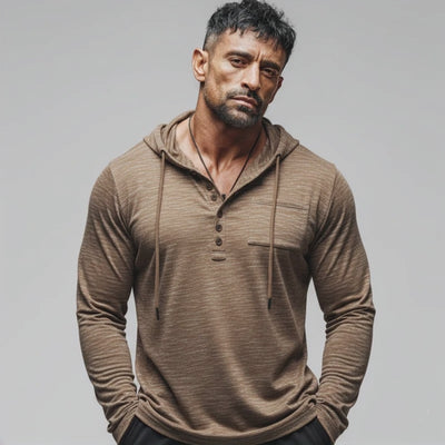 Men's Urban Brown Button-down Collar Hooded Sweatshirt