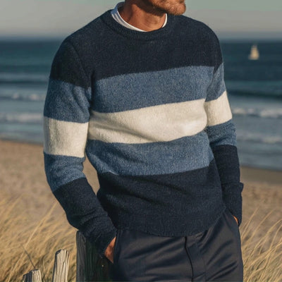 Retro Striped Pattern: The sweater showcases a sophisticated vintage striped pattern that is both eye-catching and stylish.