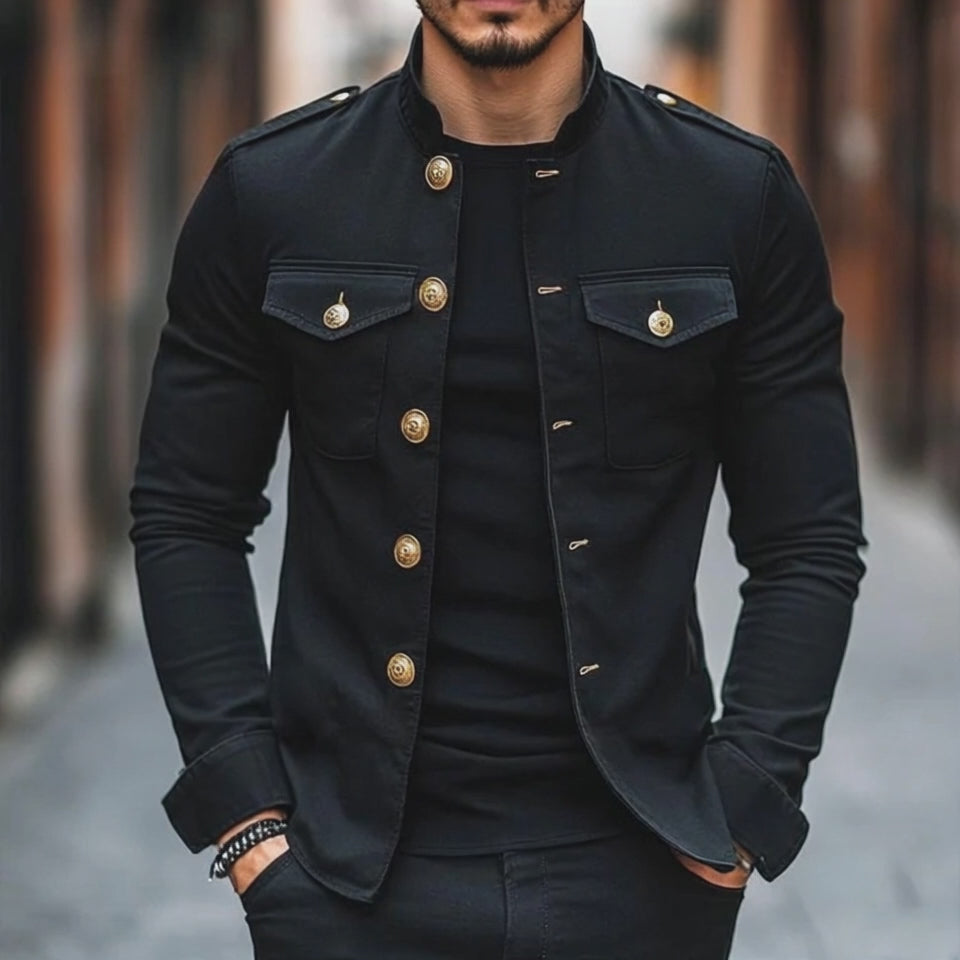 【24-hour shipping out】Men's Vintage Casual Solid Stand Collar Button Jacket 85705875TO
