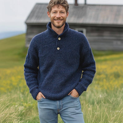 Der Dunkelblauer Vintage-Strickpullover mit zwei Knöpfen und Stehkragen für Herren ist eine perfekte Mischung aus modernem Komfort und klassischem Stil. Mit seinem raffinierten Kragendesign, dem hochwertigen Stoff und der vielseitigen Farbe ist dieser Pullover eine zeitlose Ergänzung, die jeden Look aufwertet. Bleiben Sie die ganze Saison über warm, stilvoll und mühelos elegant.