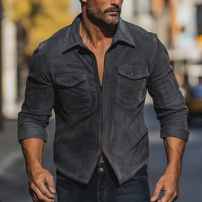 Product Name:Men's vintage faux suede zip-up thin shirt