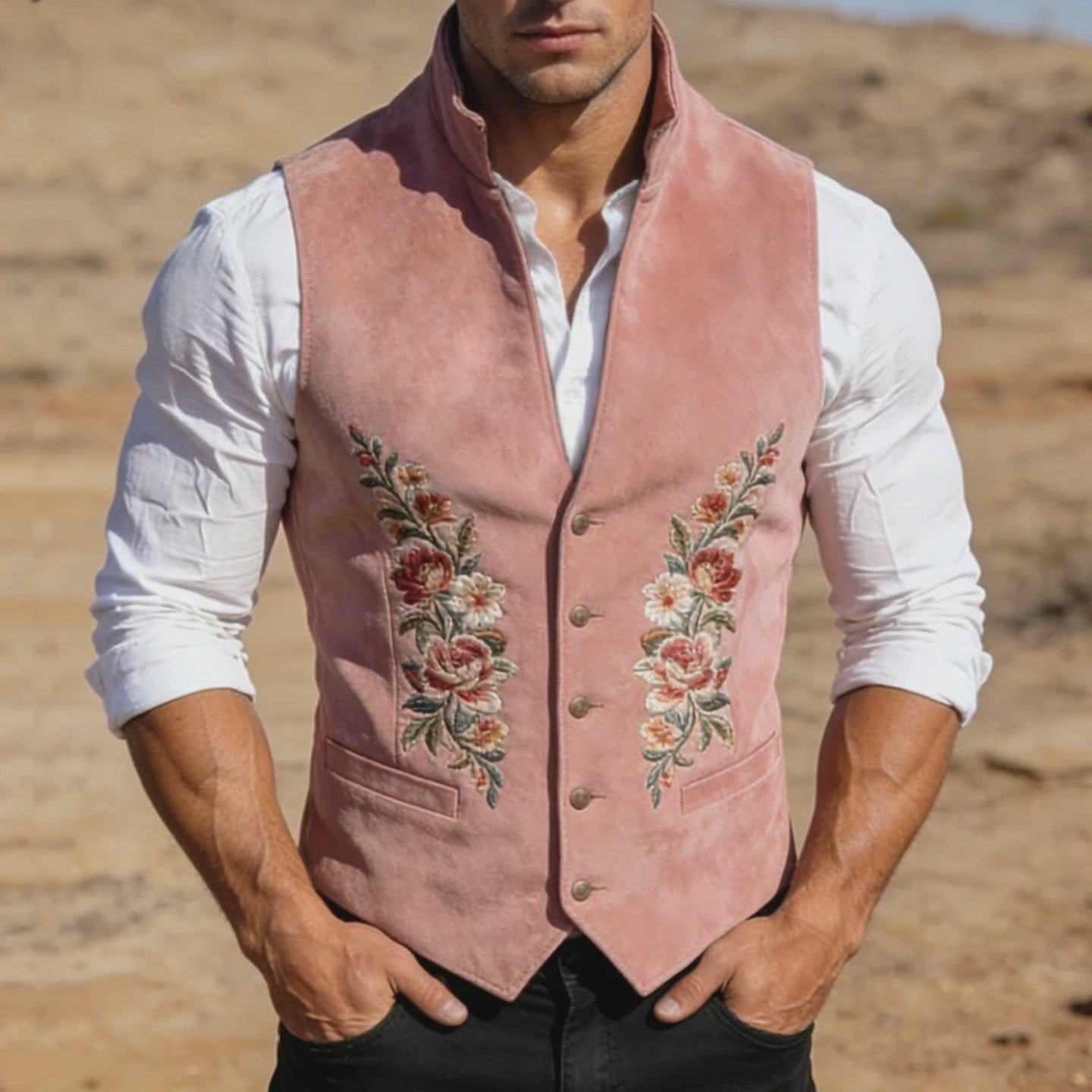 Men's Retro Casual Faux Suede Embroidered Stand Collar Vest MTZ1262A9TO