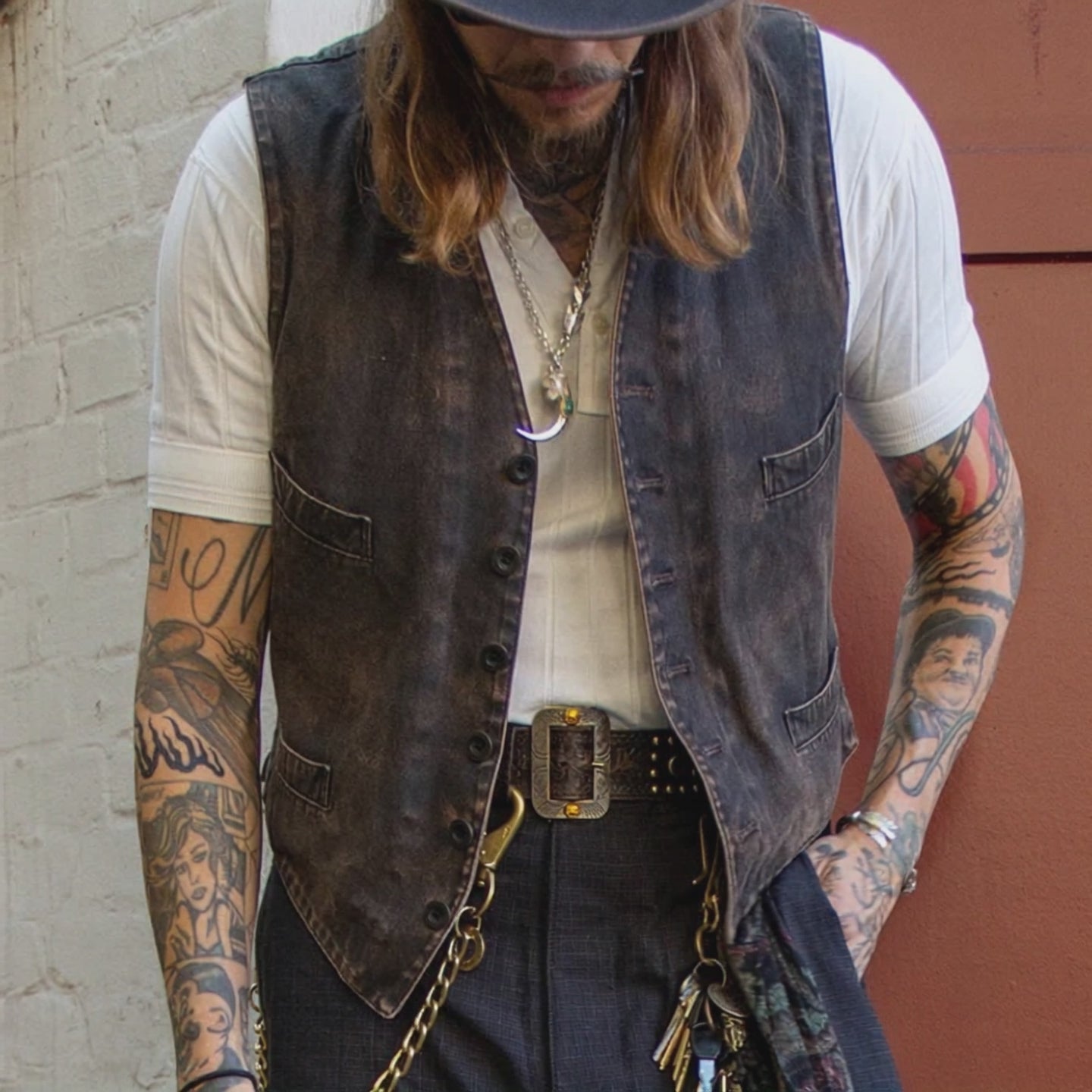 Men's Retro Casual Washed Distressed Vest MTA0989I5TO