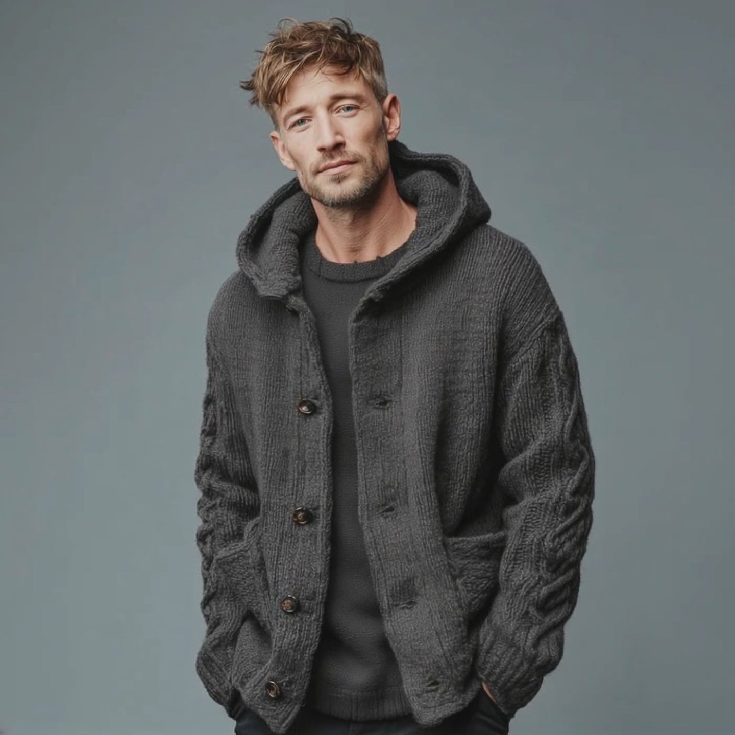 Men's Classic Casual Hooded Pocket Jacquard Knit Cardigan MTA2370I1K