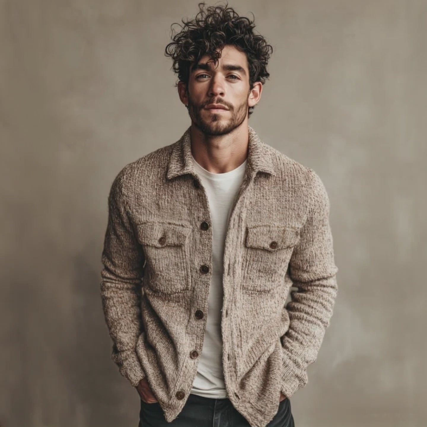 Men's Classic Casual Lapel Shirt-style Knit Cardigan MTA2502J5K