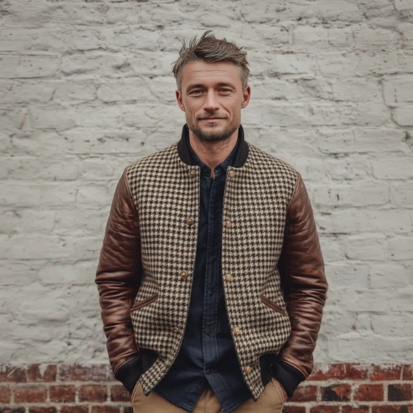 Men's Vintage Colorblock Tweed Double Breasted Jacket MTA2109J7U