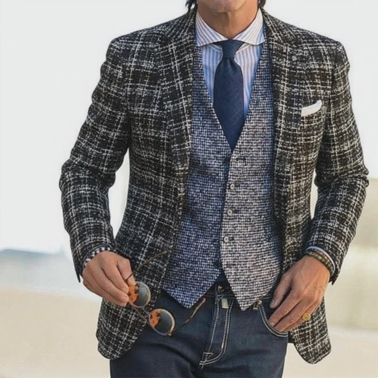 Men's Vintage Business Tweed Two-Button Blazer MTA2109J1U