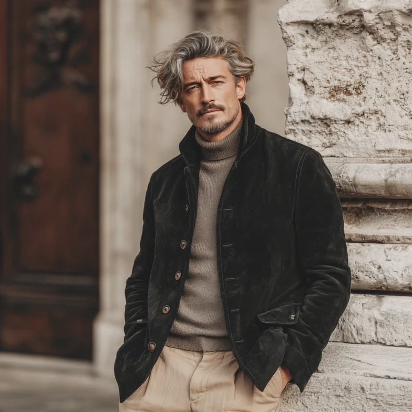 Men's Classic Retro Business Stand Collar Faux Velvet Jacket MTA2127J8K