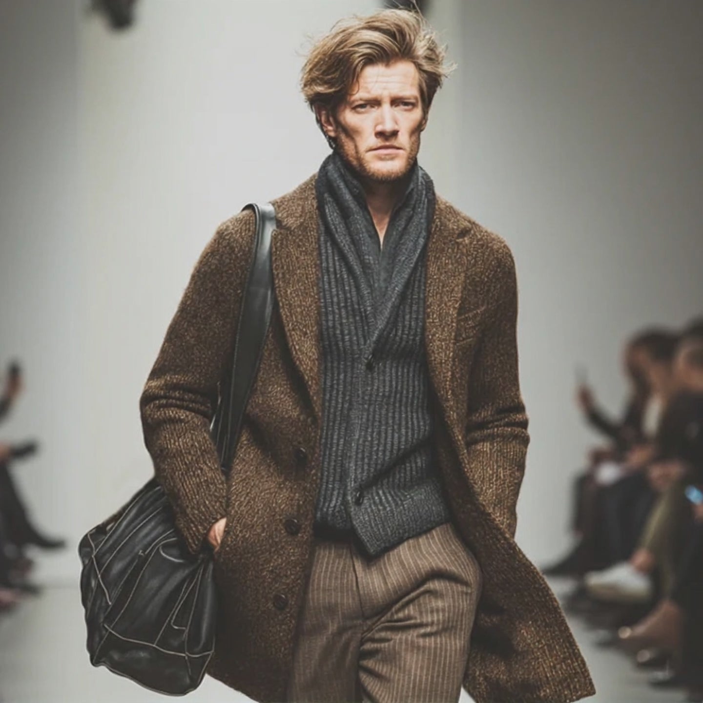 Men's Classic Herringbone Double-Breasted Faux Wool Blazer MTA2029J0U