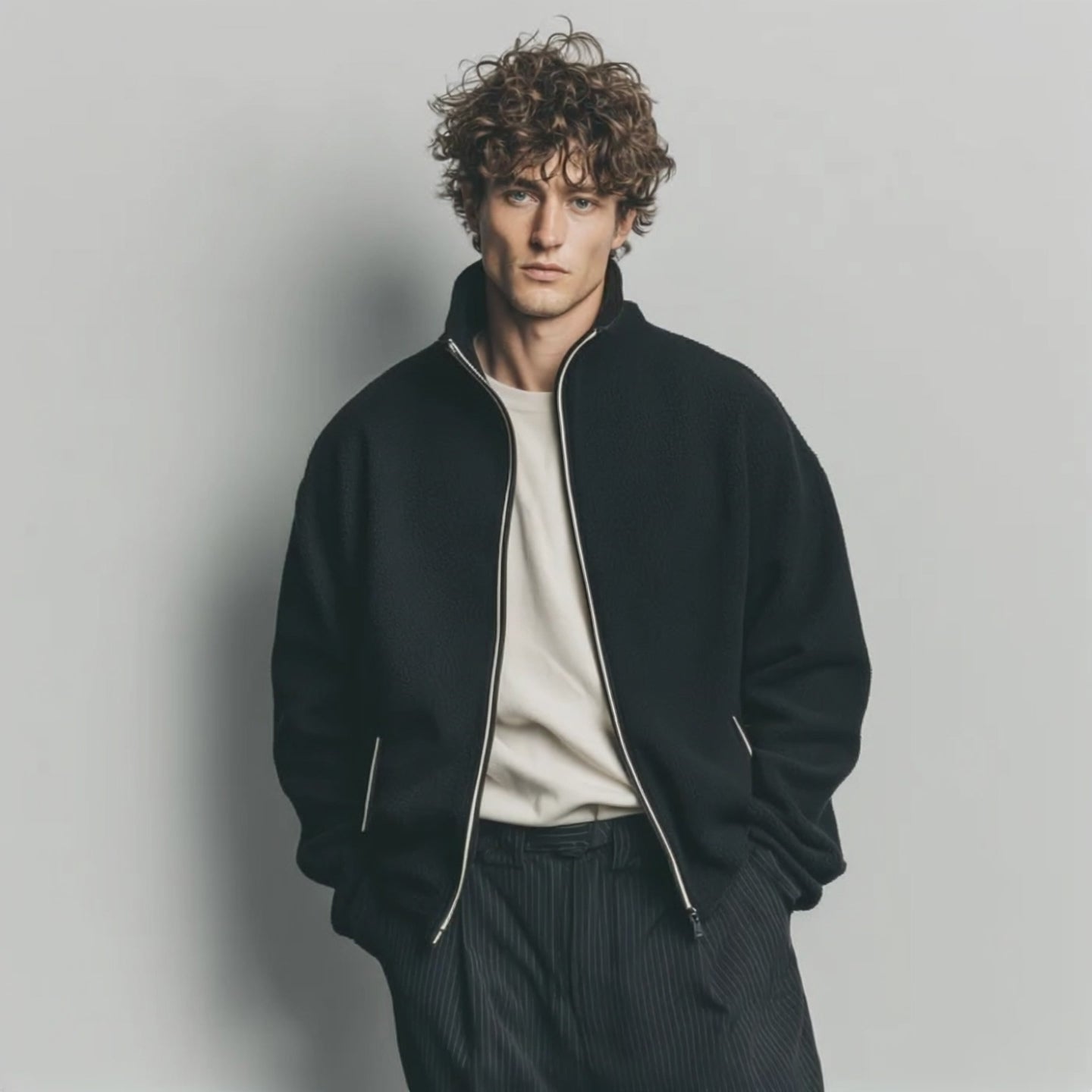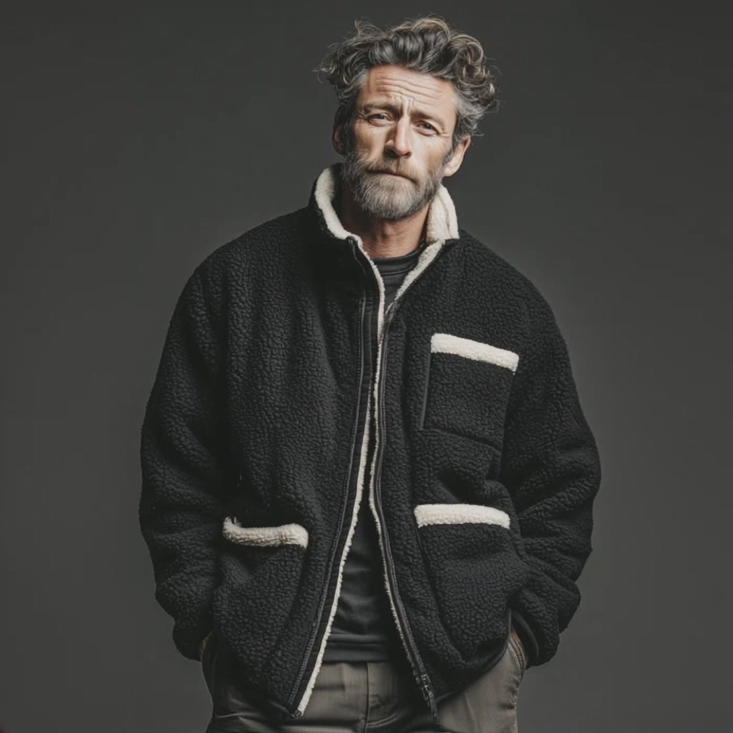 Men's Classic Casual Stand Collar Zipper Teddy Fleece Jacket MTA2004J7K