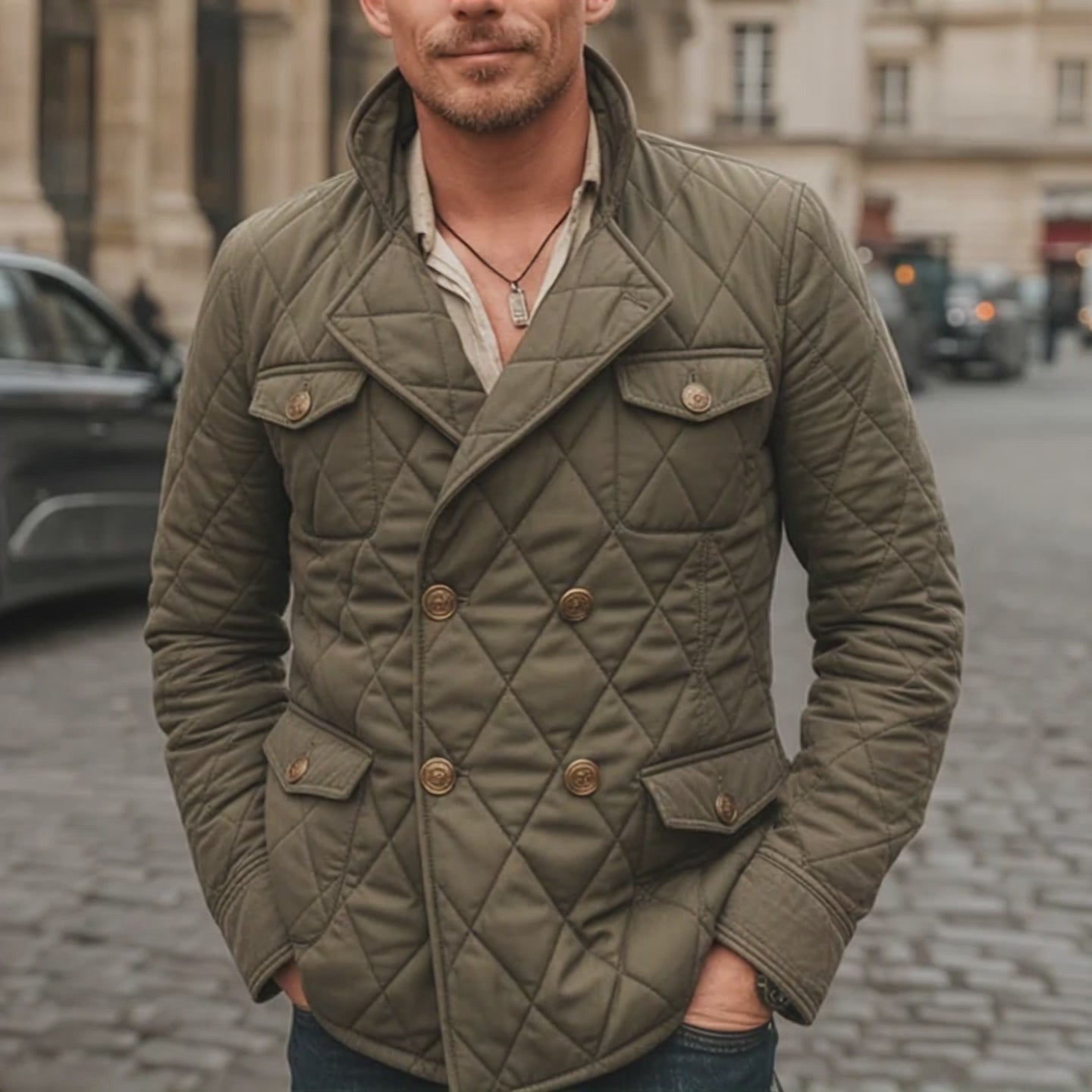 Men's Classic Double Breasted Army Green Padded Quilted Jacket MTA2073J4U