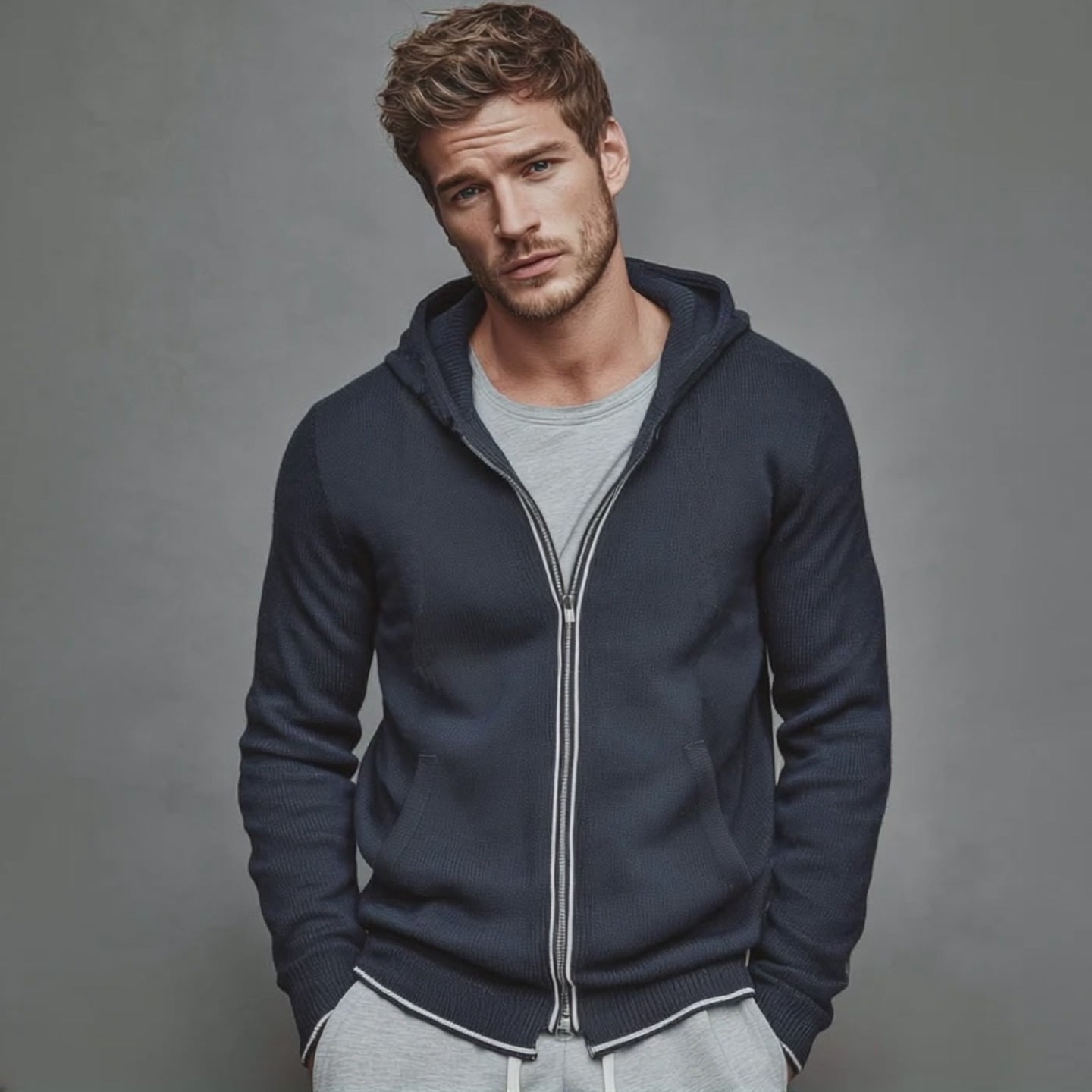 Men's Classic Casual Hooded Zippered Knit Cardigan MTA2178J2K