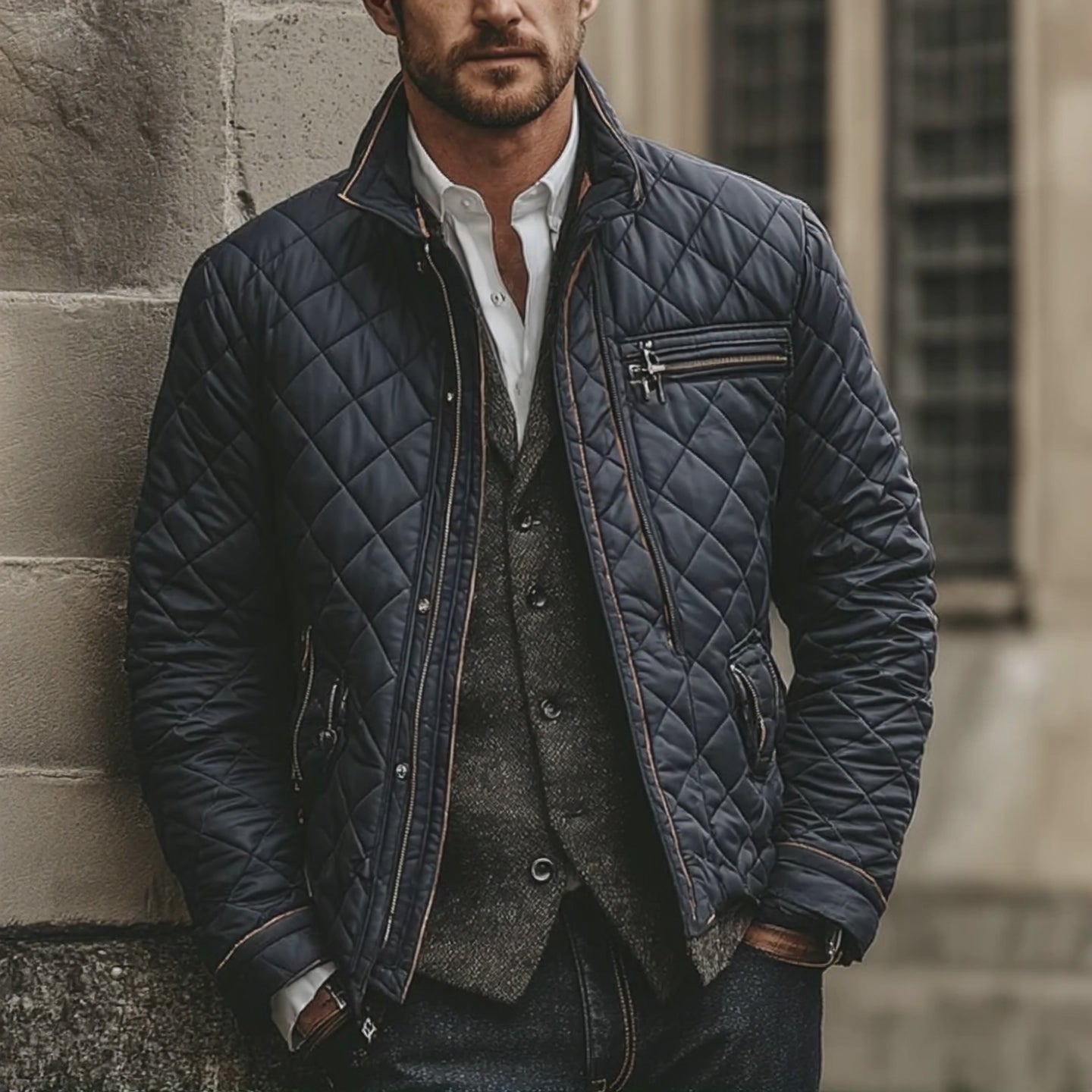 Men's Winter Vintage Quilted Stand Collar Warm Jacket MTA1513J5P
