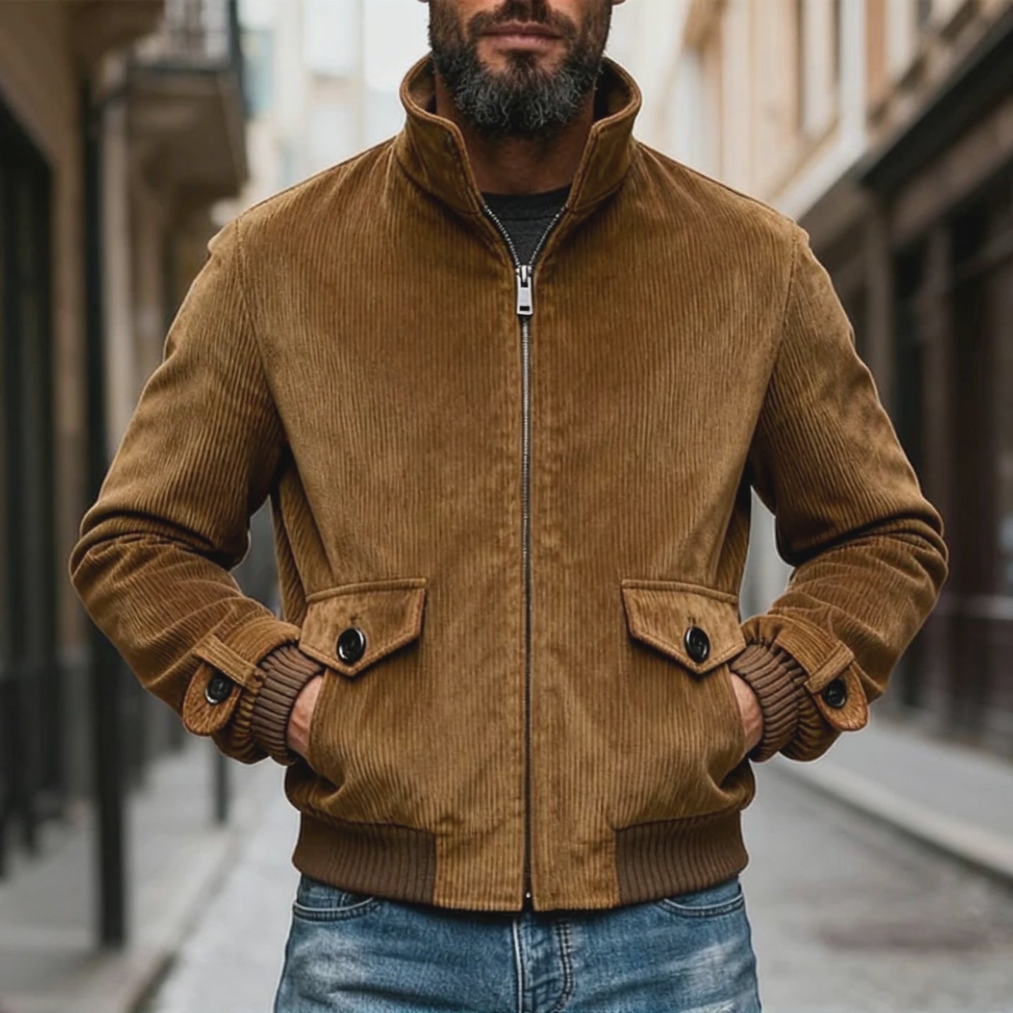Men's Vintage Corduroy Stand Collar Zip-Up Jacket MTA2093J9X
