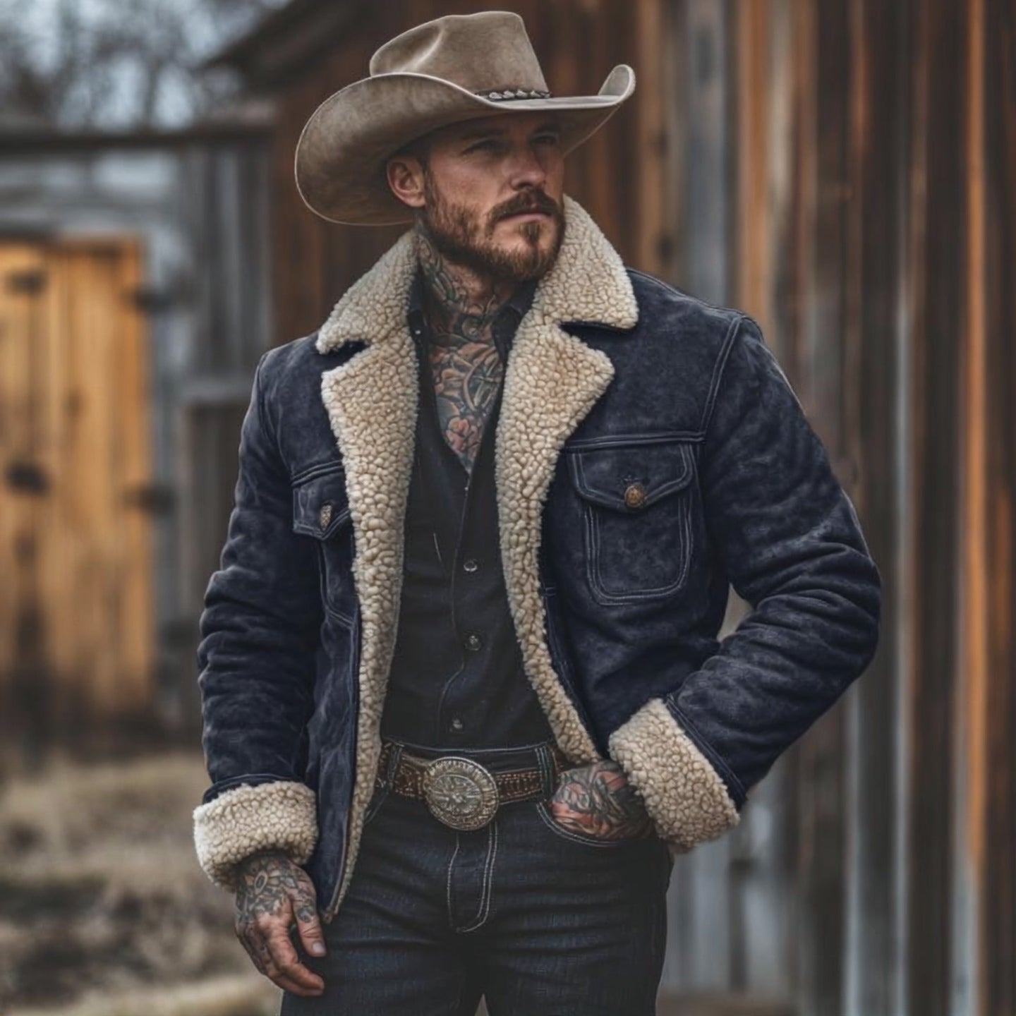 Chaqueta cálida de ante vintage con forro de lana de cordero para hombre 33819755Y