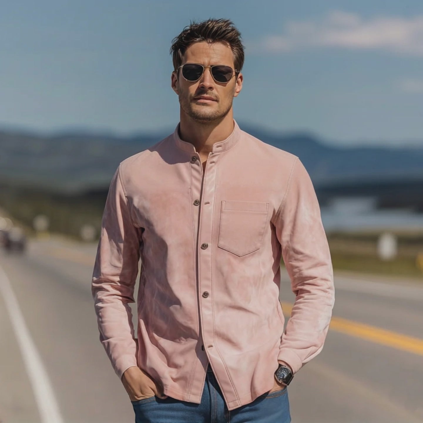 Men's Classic Casual Faux Suede Stand-collar Long-sleeved Shirt MTZ0495A0K
