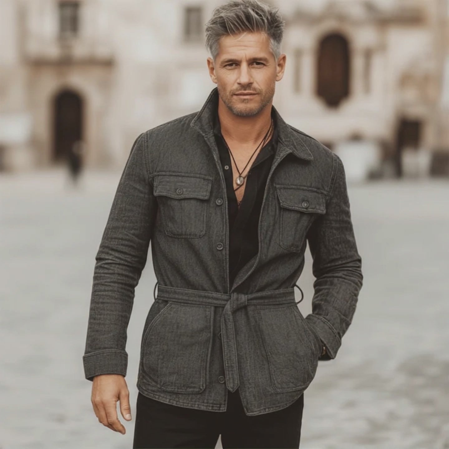 Men's Classic Elegant Dark Grey Blend Belt Laple Jacket MTA3019L5U