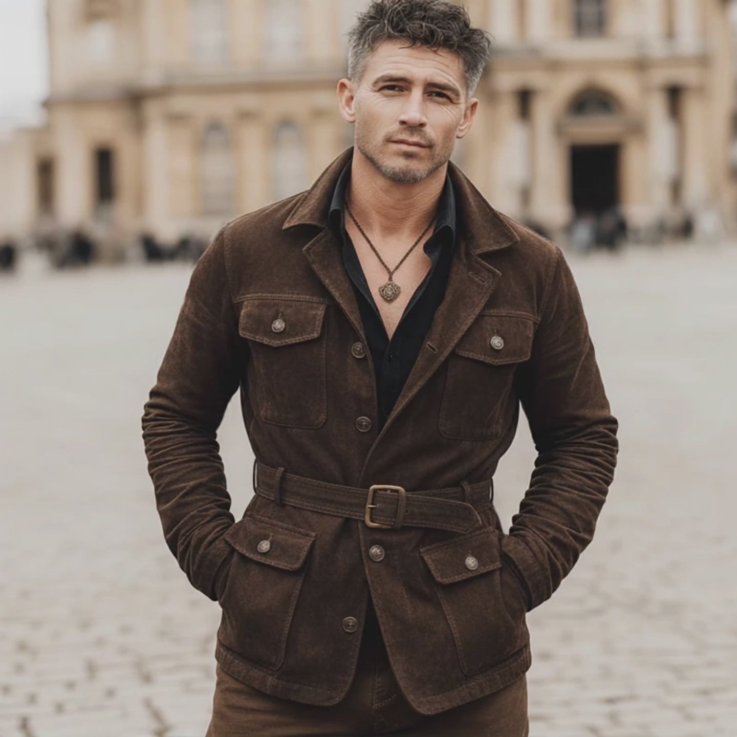 Men's Classic Elegant Faux Suede Belt High Hip Jacket MTA3002L6U