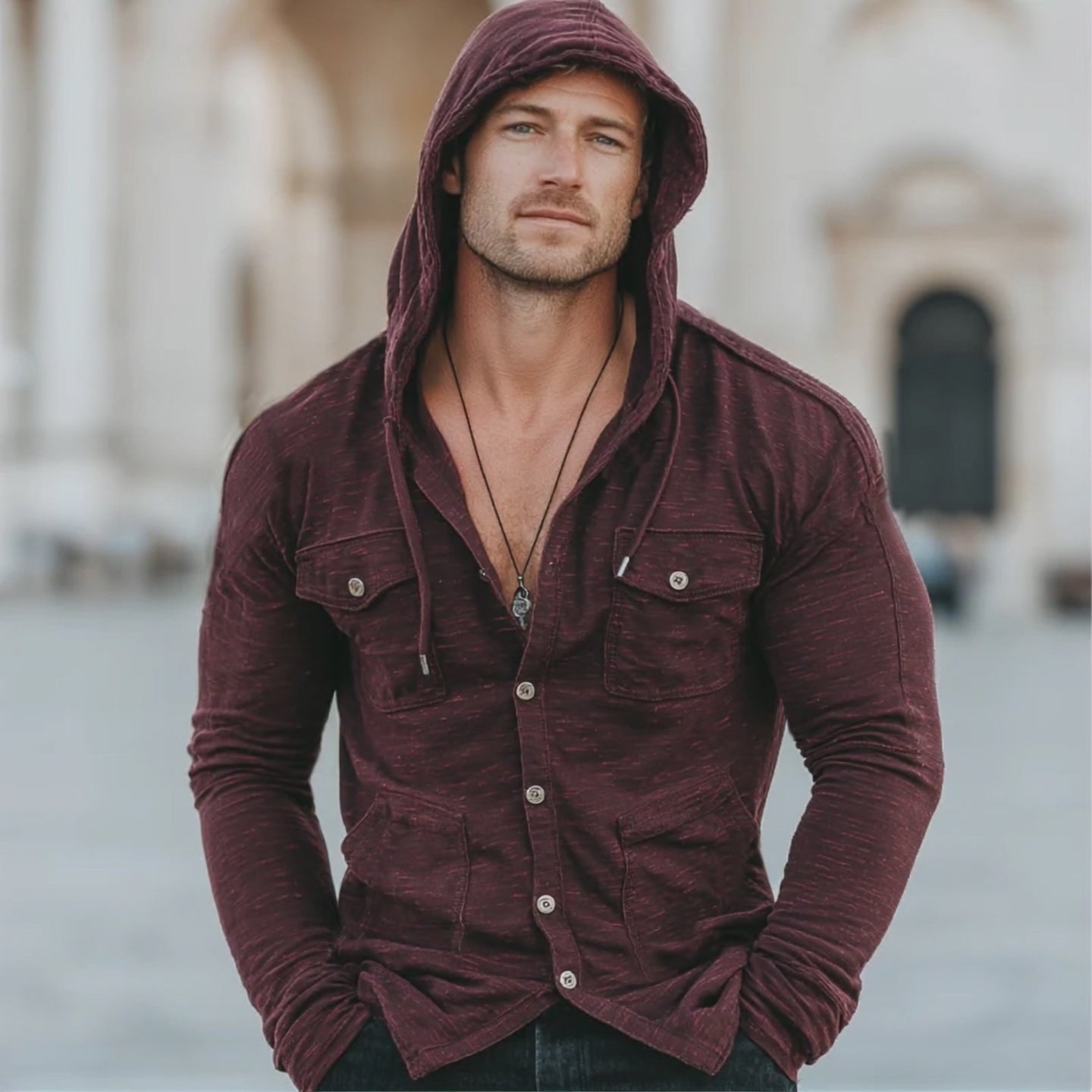 Men's Urban Casual Slub Fabric Hooded Button-Up Sweatshirt MTA2689L4U