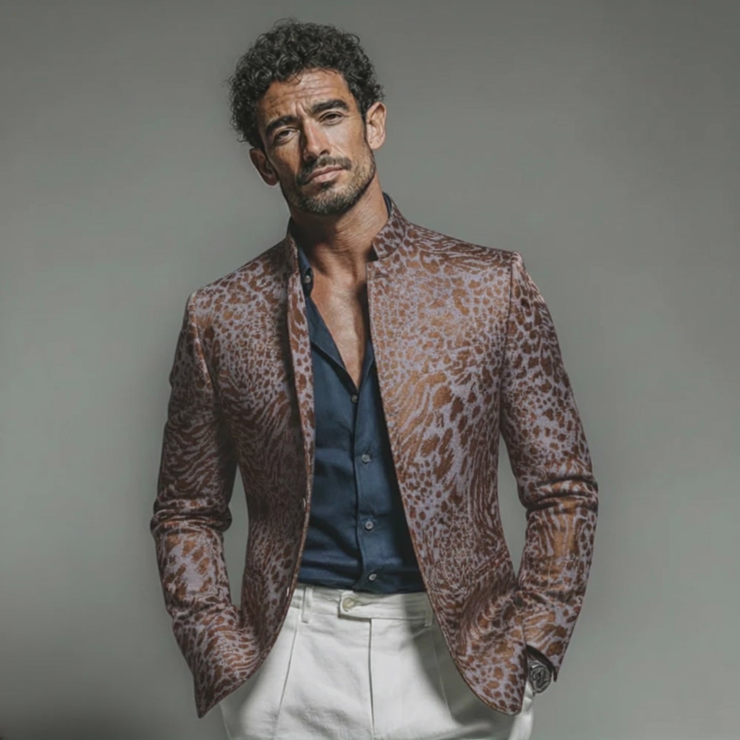 Men's Classic Vintage Stand-collar Blended Jacquard Jacket MTA3088L6K