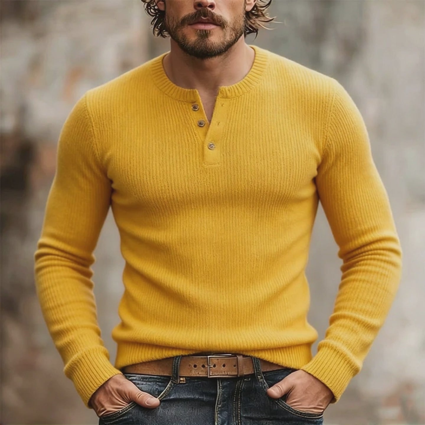 Men's Retro Casual Solid Color Knit Henley Collar Sweater Long-Sleeve T-Shirt MTZ1932A5TO