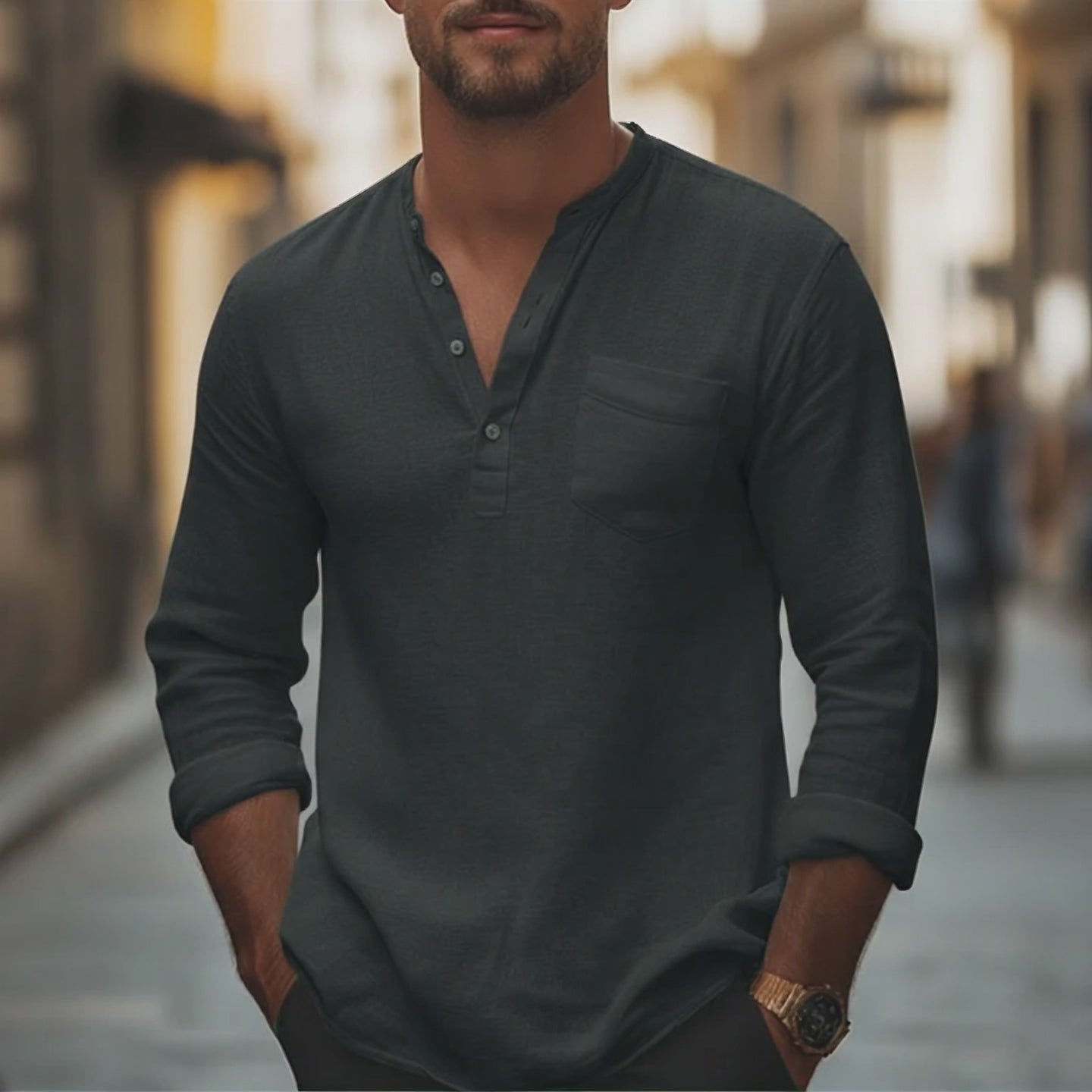 Men's Spring Fashion 100% Cotton Long-Sleeve Henley Shirt MTZ2224A5P