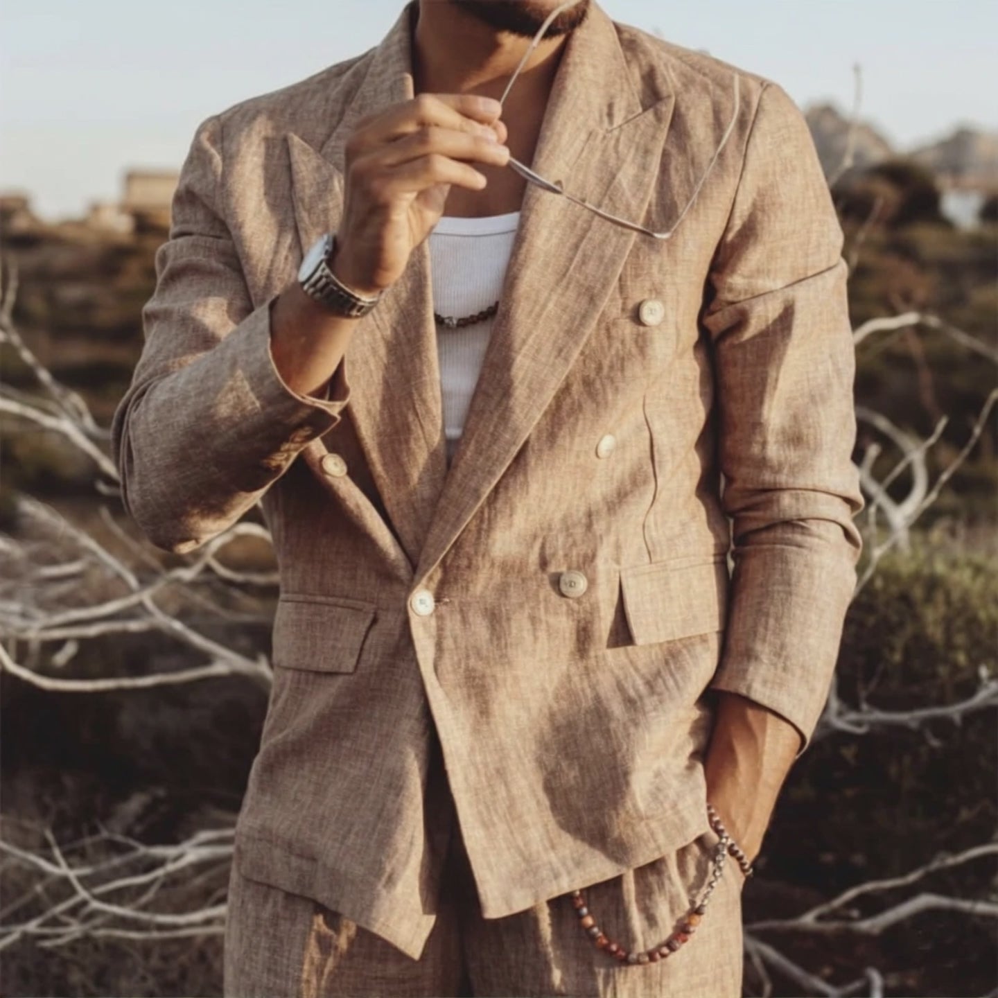 Men's Classic Urban Style Cotton And Linen Double-Breasted Single-Vented Blazer MTA3034L6U