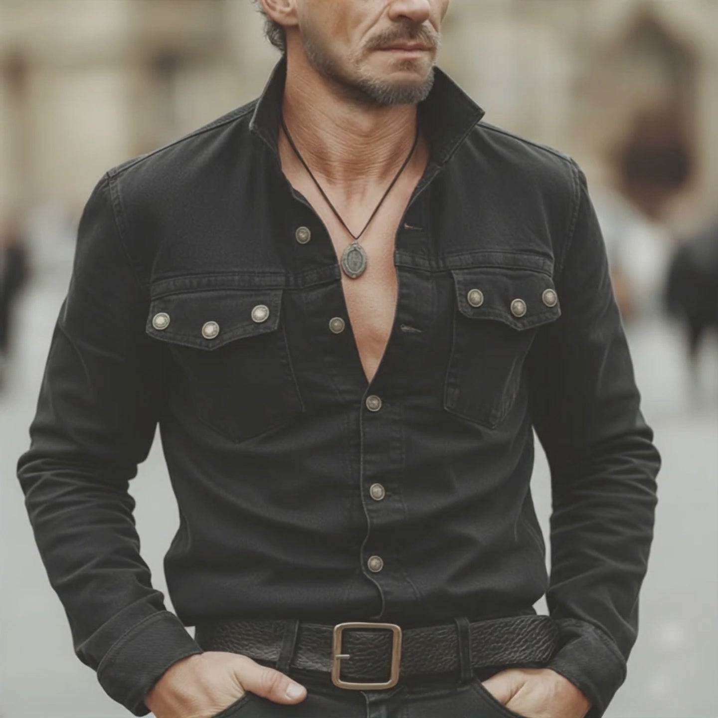 Men's Vintage Multi-button Cotton Lapel Long-sleeved Shirt MTA3080L7U
