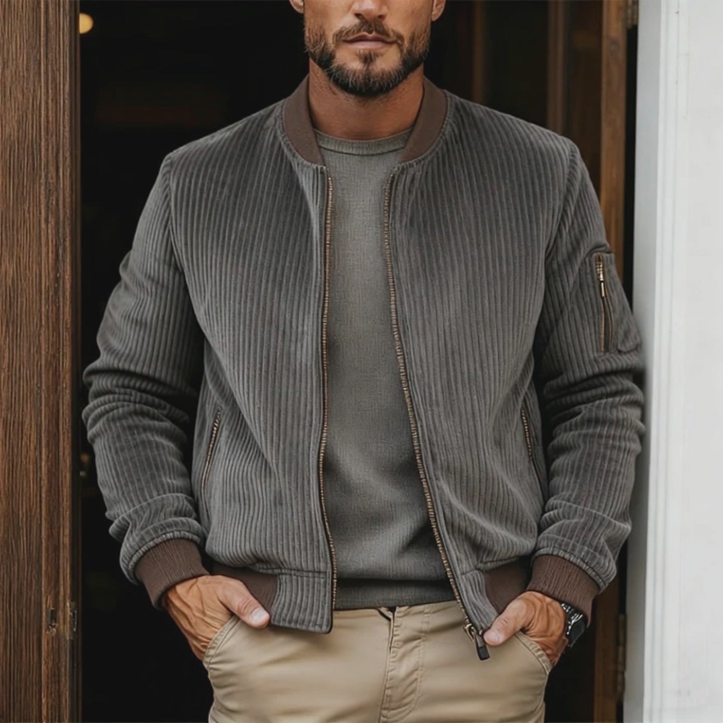 Men's Vintage Corduroy Solid Baseball Collar Zip-Up Jacket MTA2436J4X