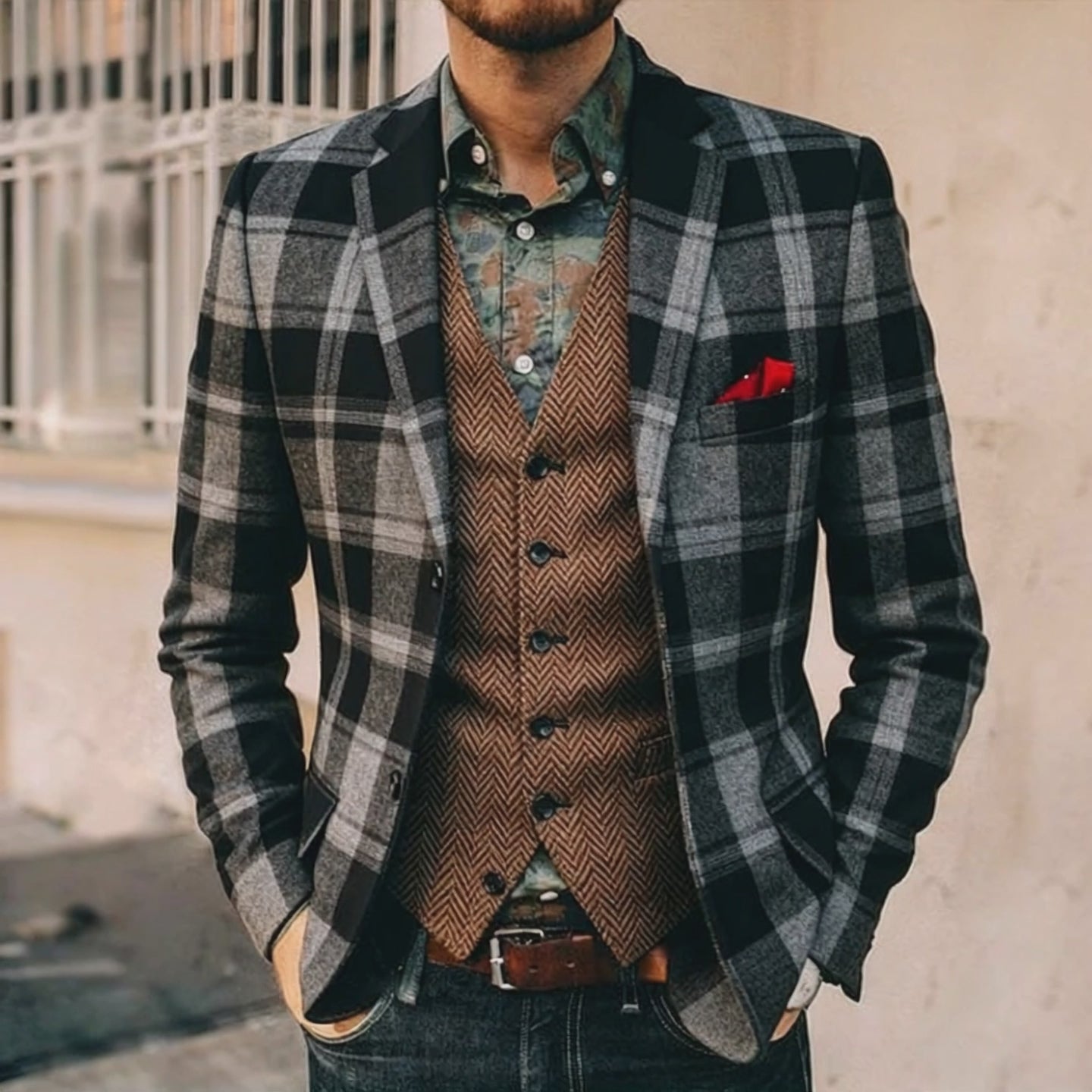 Men's Vintage Casual Check Button Blazer MTA1505J0TO