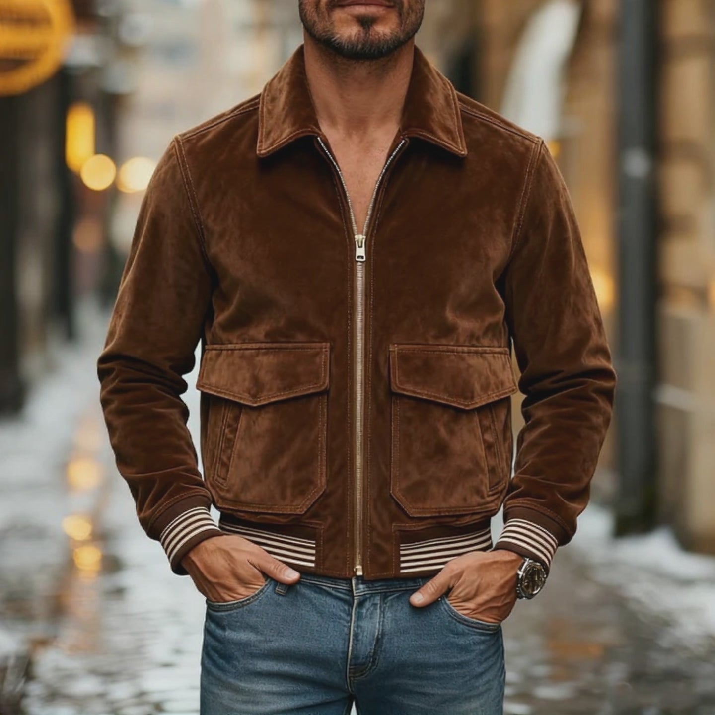 Men's Vintage Western Faux Suede Lapel Zip-Up Jacket MTA1746J2X