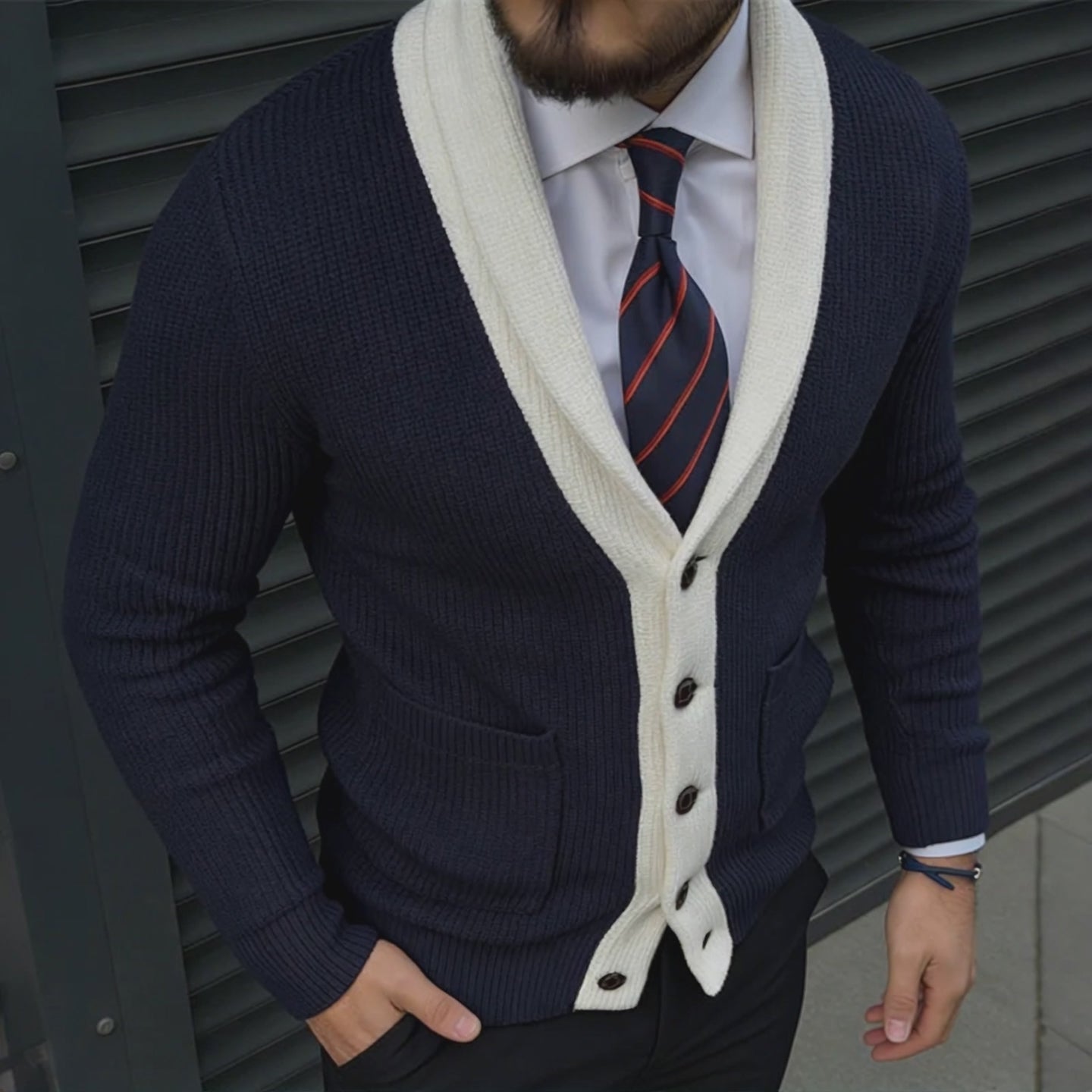 Men's Retro Casual Color Block Knit Button Cardigan MTA1785L0TO
