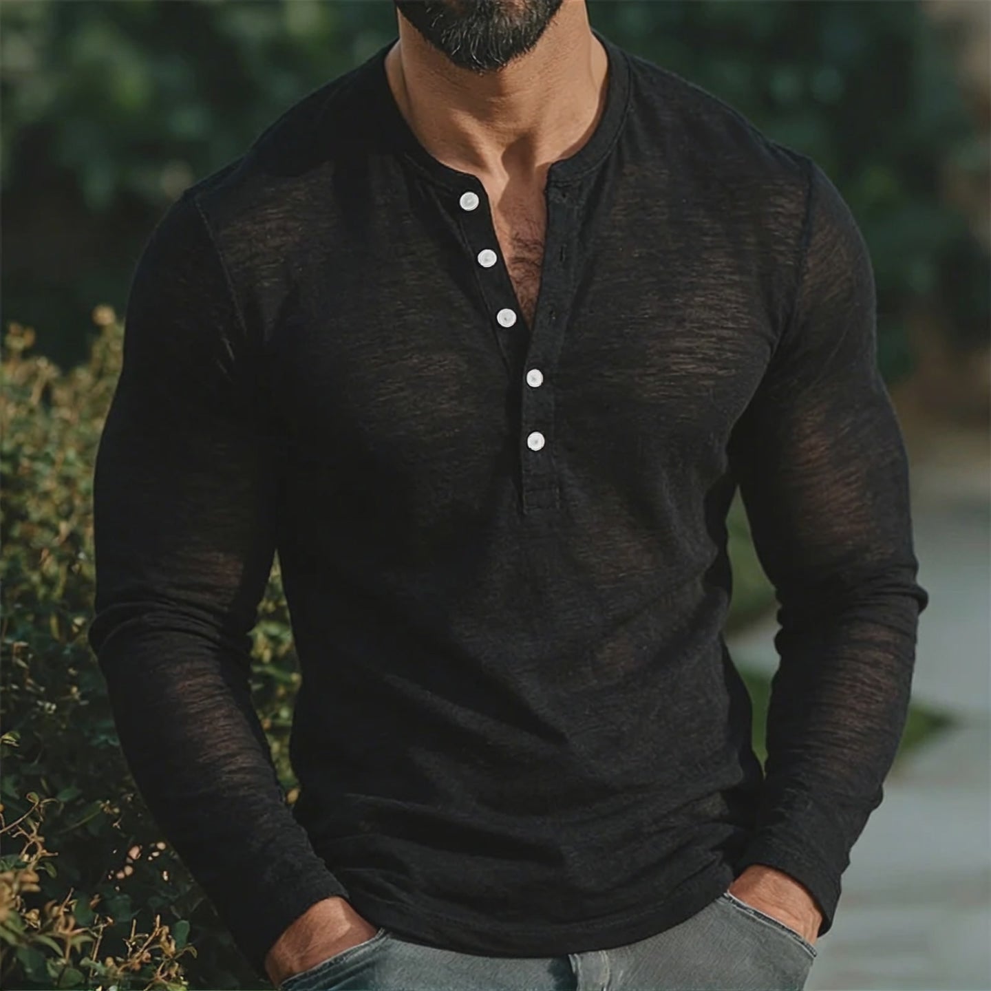 Men's Retro Casual Cotton Henley Collar Long-Sleeve T-Shirt MTA2227L4TO