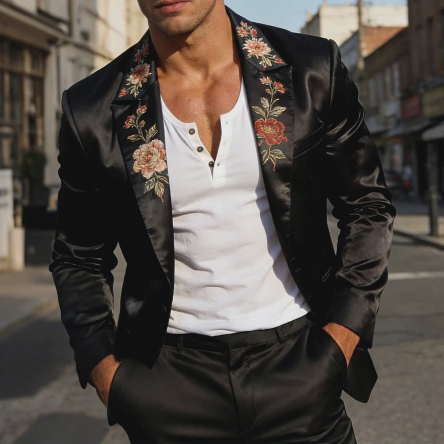 Men's Retro Casual Satin Print Blazer MTA2224L2TO
