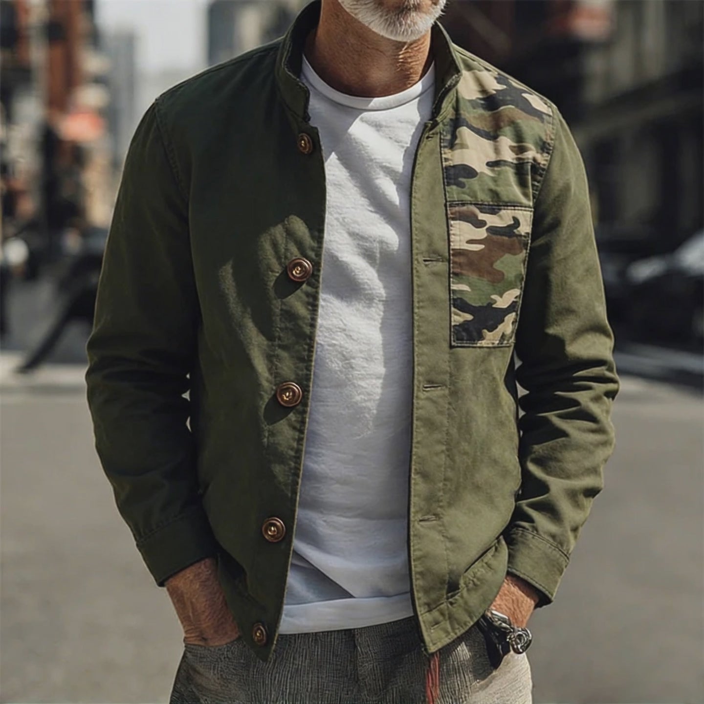 Men's Retro Casual Camouflage Patchwork Stand Collar Button Jacket MTA2206L6TO