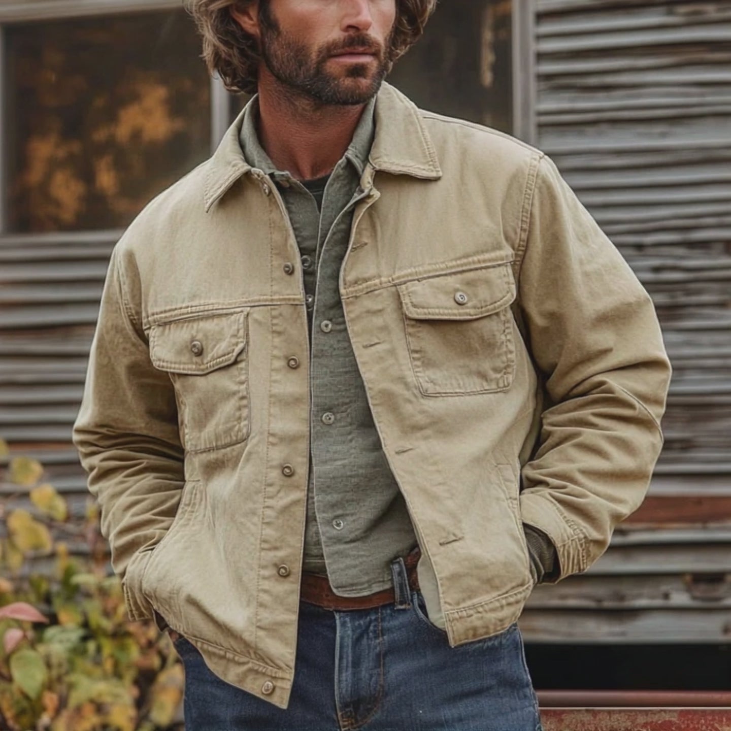 Men's Cotton Lapel Casual Solid Color Work Jacket MTA3092I4X