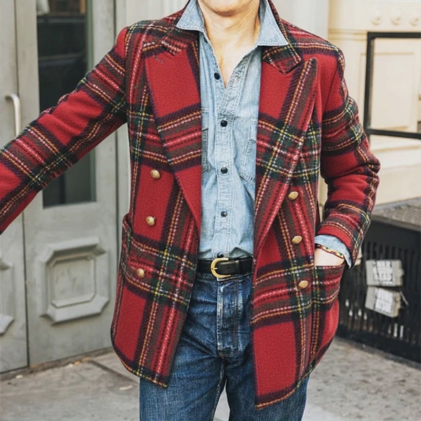 Men's Classic Vintage Plaid Double-breasted Short Coat MTA2912I8U