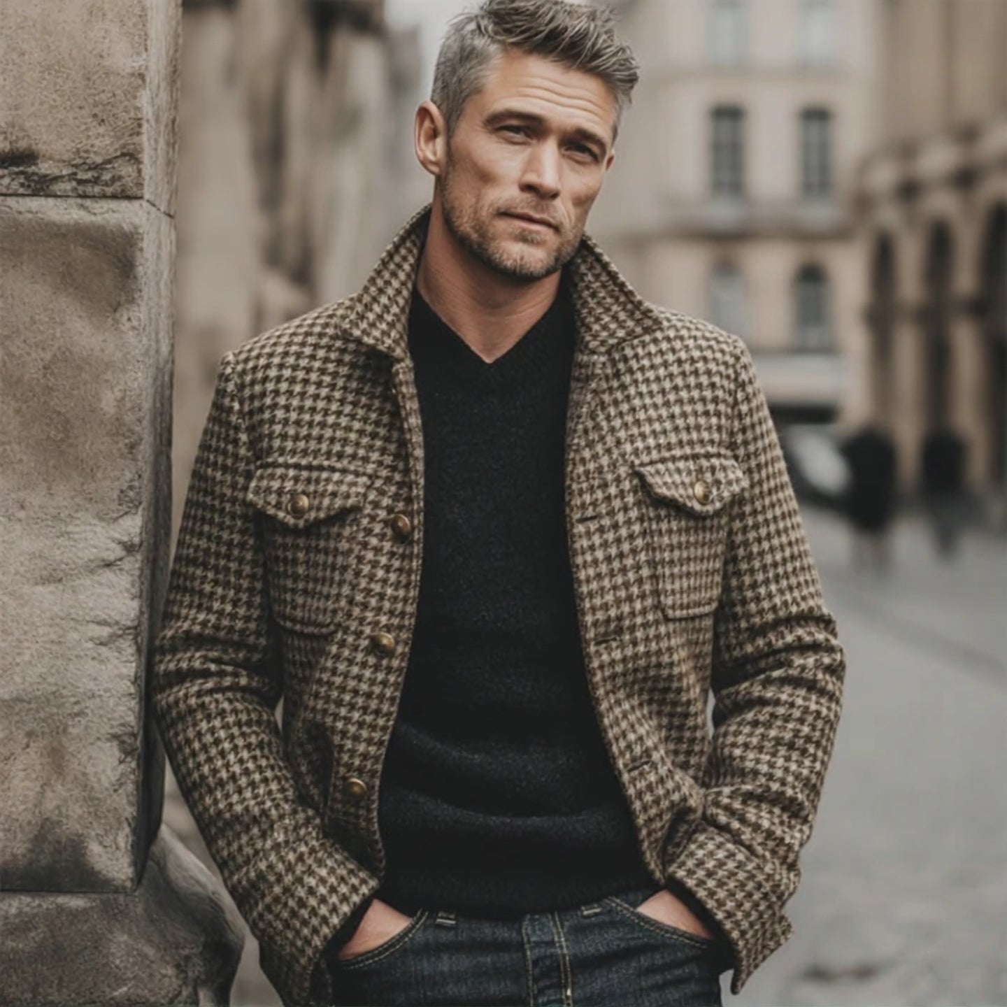 Men's Retro Classic Houndstooth Lapel Faux Wool Jacket MTA3100J0U