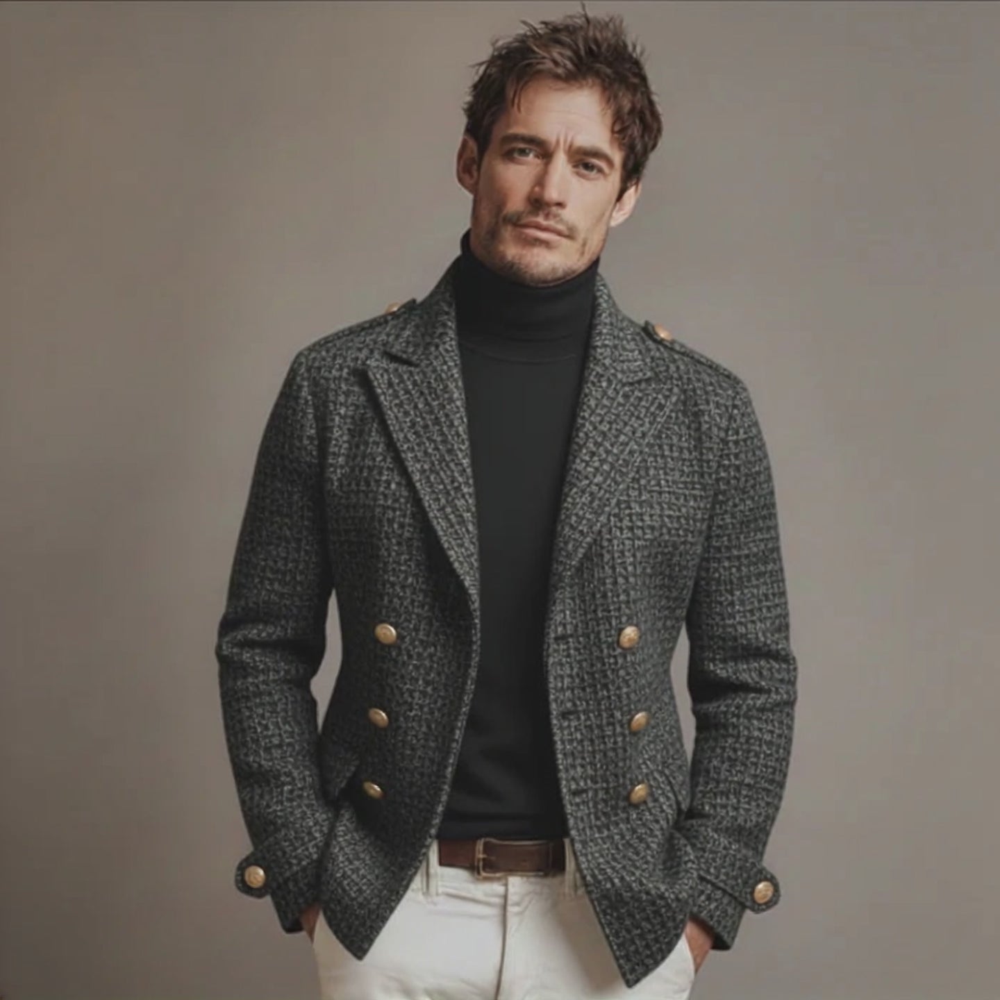 Men's Classic Retro Lapel Double-breasted Faux Wool Blend Jacket MTA3107J8K